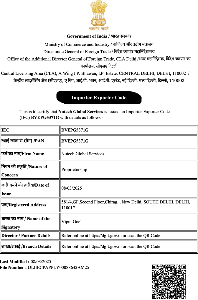 We are proudly registered with the Food Safety and Standards Authority of India (FSSAI) – the governing body that ensures food products meet the highest safety and hygiene standards in India. This certification reflects our ongoing commitment to deliver only the safest, most reliable, and quality-assured products to our customers.